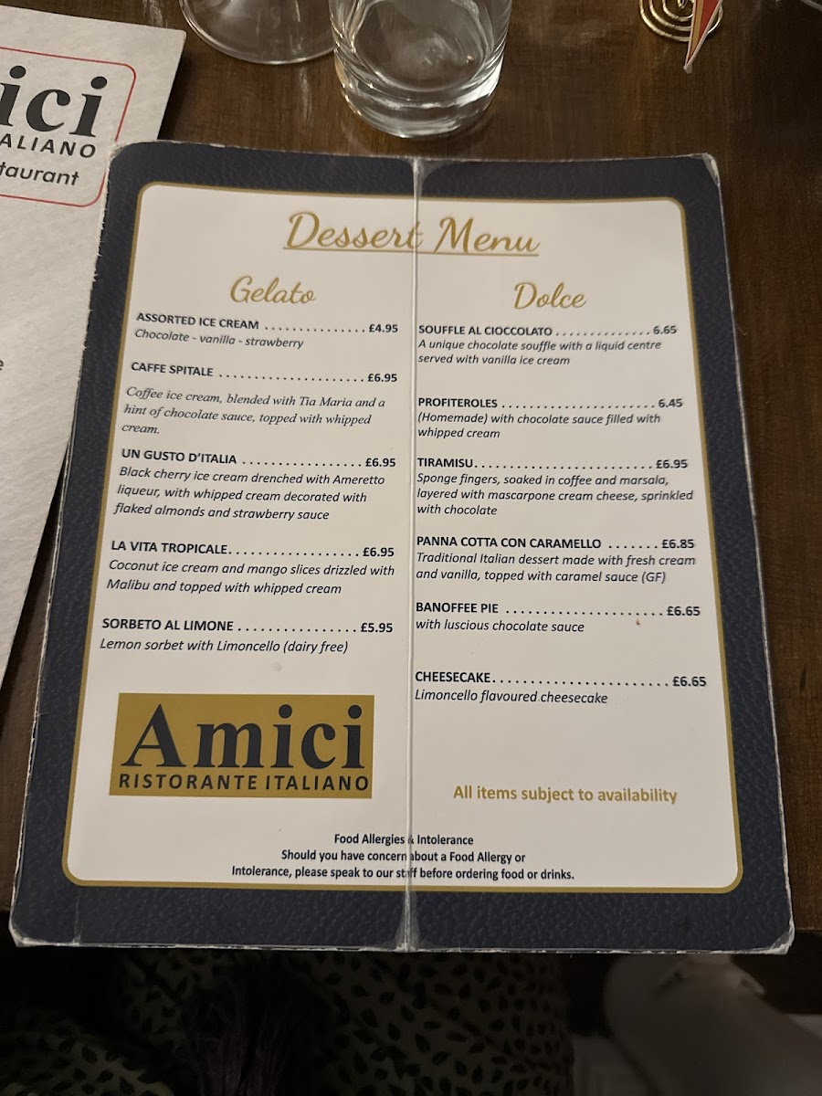 The Amici Restaurant Menu at 29 New Rd, Chippenham SN15 1HZ, United Kingdom, delivers a vibrant and authentic Italian dining experience that seamlessly blends tradition with a touch of modern flair. This local favourite stands out with a menu that honours the roots of Italian cuisine while offering a satisfying variety of dishes for different palates.